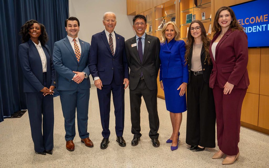 The Portrait Unveiling was preceded by a joyful Class of 1968 reunion lunch, which welcomed President Biden back among his classmates and introduced two students who embody the class’s enduring investment in the next generation: 3L Gabby Kehoe, recipient of the Class of 1968 Scholarship Fund, and 3L Lacey Caputo, the Beau Biden Memorial Scholar.